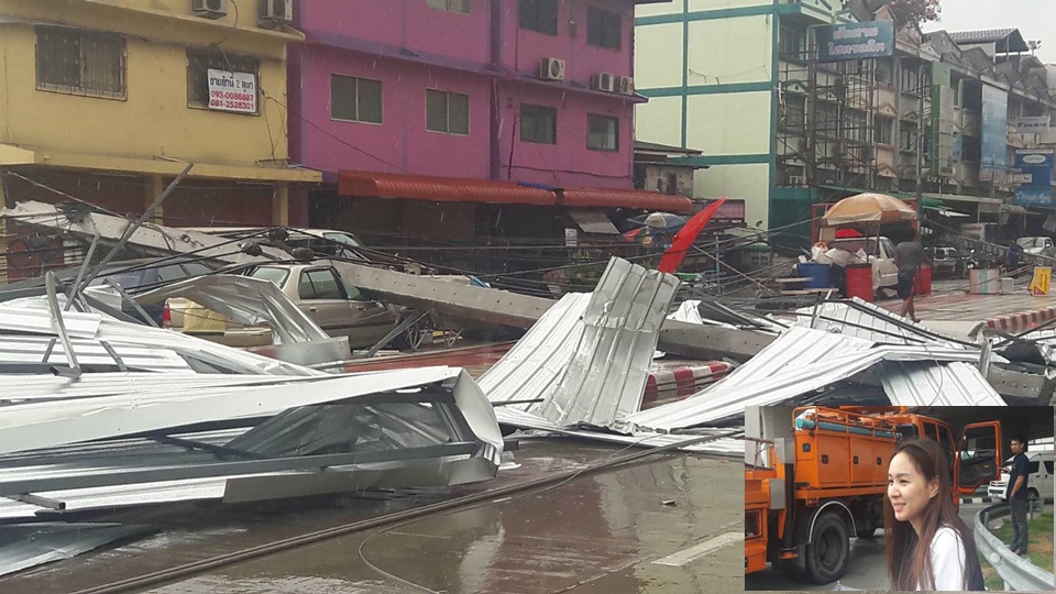 นางสาวอภิญญา หัสสา แม่ค้าขายอาหารตามสั่ง บอกว่า ช่วงเวลาประมาณ 11.00 น. เกิดพายุฝนฟ้าคะนองรุนแรงก่อนที่ฟ้าจะผ่า บริเวณเสาไฟฟ้าส่องสว่างริมถนนและเกิดกระแสไฟช๊อต จนเสาไฟฟ้าที่อยู่ใกล้กันล้มลง และดึงเสาไฟฟ้าต้นอื่นๆล้มตาม ขณะเกิดเหตุตนกำลังจะเรียกลูกออกไป เก็บของหน้าร้าน ฟ้าผ่าต่อหน้าต่อตาห่างไม่ถึง 20 เมตร จนทำอะไรไม่ถูก เคราะห์ยังดีที่ไม่ได้รับบาดเจ็บ