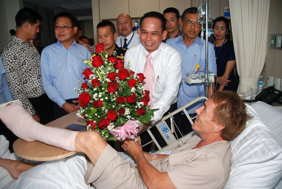 ประจวบคีรีขันธ์ 17 เม.ย.- รองผู้ว่าฯ ประจวบฯ ห่วงนักท่องเที่ยวนอร์เวย์รุดเยี่ยมอาการบาดเจ็บถูกสัตว์ทะเลกัดขณะดำน้ำที่หัวหิน ล่าสุดปลอดภัยแล้ว แพทย์ประเมินลักษณะบาดแผลอาจเป็นฉลาม รอผู้เชี่ยวชาญพิสูจน์ให้ชัด