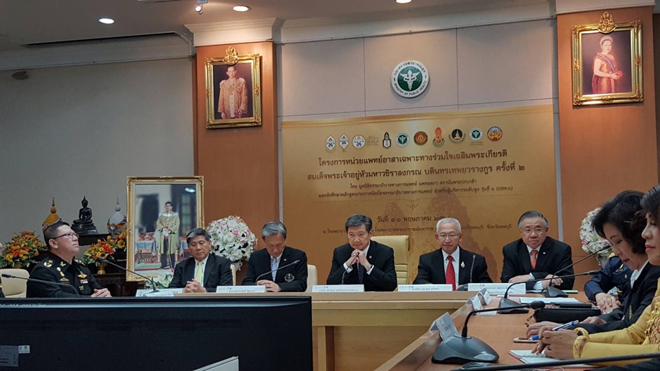 นพ.ปิยะสกล สกลสัตยาทร รัฐมนตรีว่าการกระทรวงสาธารณสุข (สธ.) นพ.อุดม คชินทร รัฐมนตรีช่วยว่าการกระทรวงศึกษาธิการ (ศธ.) และ นพ.ประสิทธิ์ วัฒนาภา นายกแพทยสภา ร่วมกันแถลงเปิดโครงการหน่วยแพทย์อาสาเฉพาะทางร่วมใจเฉลิมพระเกียรติ สมเด็จพระเจ้าอยู่หัวซึ่งเป็นการระดมทีมแพทย์เฉพาะทาง ผู้เชี่ยวชาญมาร่วมกันผ่าตัดรักษาโรคยาก ซับซ้อน 20 สาขา ใน 3 รพ.ได้แก่ รพ.อานันทมหิดล ,รพ.พระนารายณ์มหาราช และรพ.มะเร็งลพบุรี เนื่องจากเป็นจังหวัดที่ไม่ใหญ่มาก อีกทั้ง รพ.ในพื้นที่ก็ไม่ใหญ่โต มีแพทยเฉพาะไม่ครบทุกสาขา ดังนั้นโครงการดังกล่าวจึงเข้ามาช่วยเสริม เพื่อช่วยเหลือประชาชน ลดความเหลื่อมล้ำทางการแพทย์ และเข้าถึงการรักษาอย่างรวดเร็ว โดยตั้งเป้าหมายให้การรักษาผู้ป่วยประมาณ 10,000 คน โดยไม่มีค่าใช้จ่าย