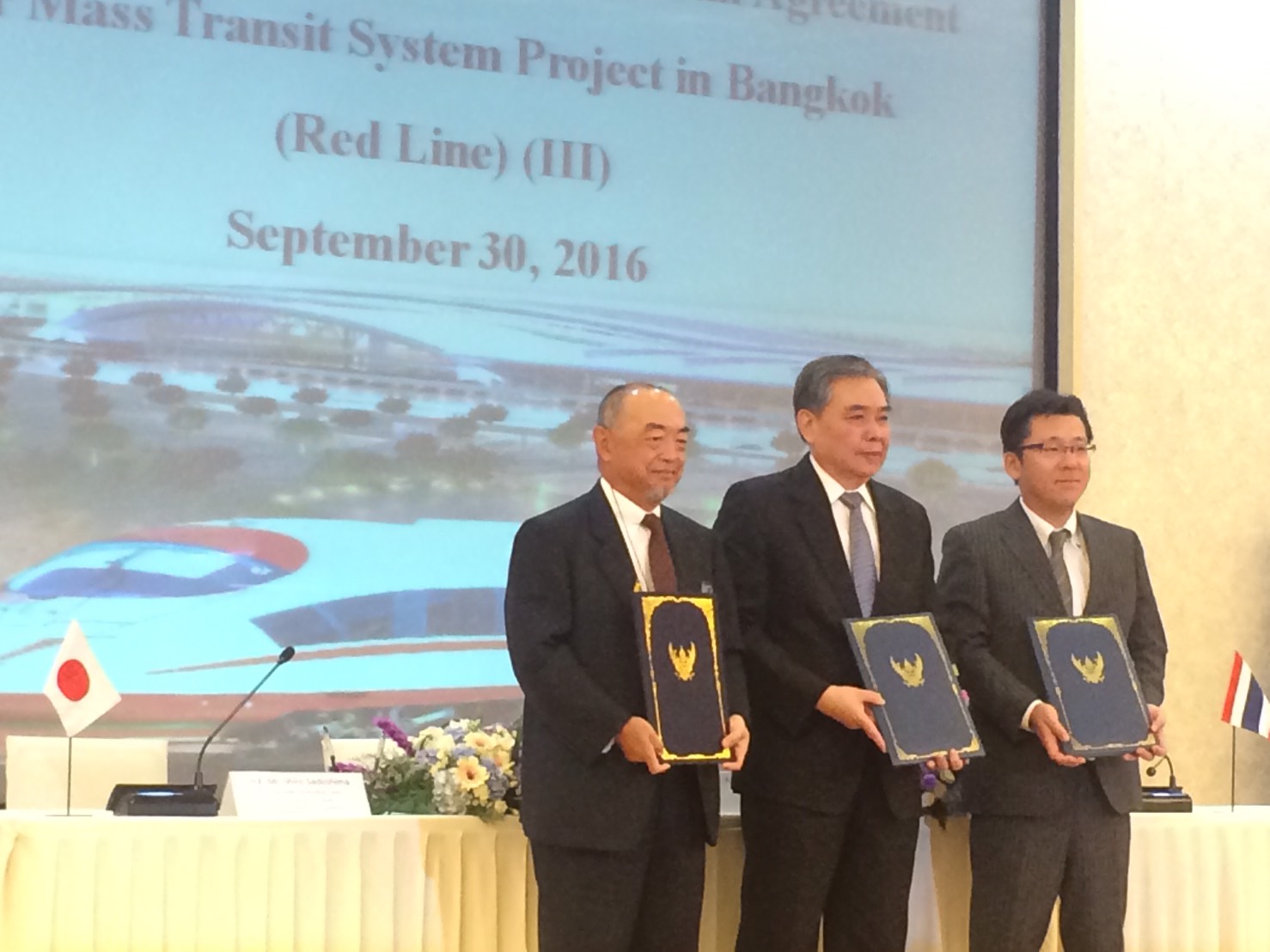 สำหรับโครงการรถไฟชานเมืองสายสีแดง ช่วงบางซื่อ-รังสิต มีการลงนามในสัญญาเงินกู้ทั้งสิ้น 3ฉบับ รวมเป็นเงินกู้ทั้งสิ้น 268,081 ล้านเยน หรือประมาณ 80,000 ล้านบาท