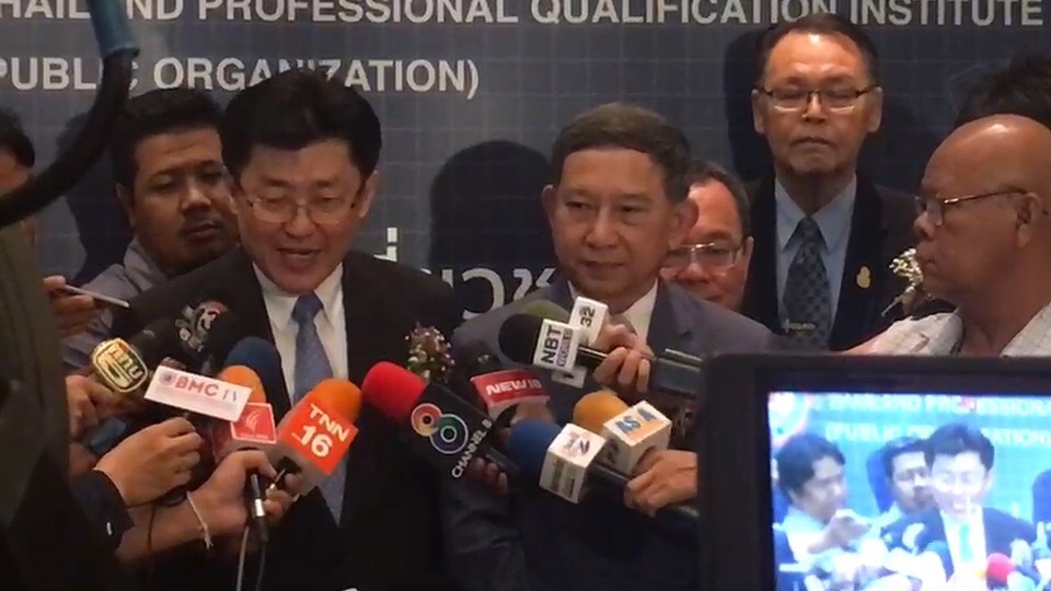 พลอากาศเอกประจิน จั่นตอง รองนายกรัฐมนตรี เป็นสักขีพยานในพิธีลงนามความร่วมมือระหว่าง บริษัท ท่าอากาศยานไทย จำกัด (มหาชน) สถาบันคุณวุฒิวิชาชีพ (องค์การมหาชน) และมหาวิทยาลัยสวนดุสิต ในการพัฒนาผู้ขับขี่รถยนต์สาธารณะ (แท๊กซี่) ให้มีความรู้ความสามารถ และทักษะการทำงานตามมาตรฐานวิชาชีพและคุณวุฒิวิชาชีพ