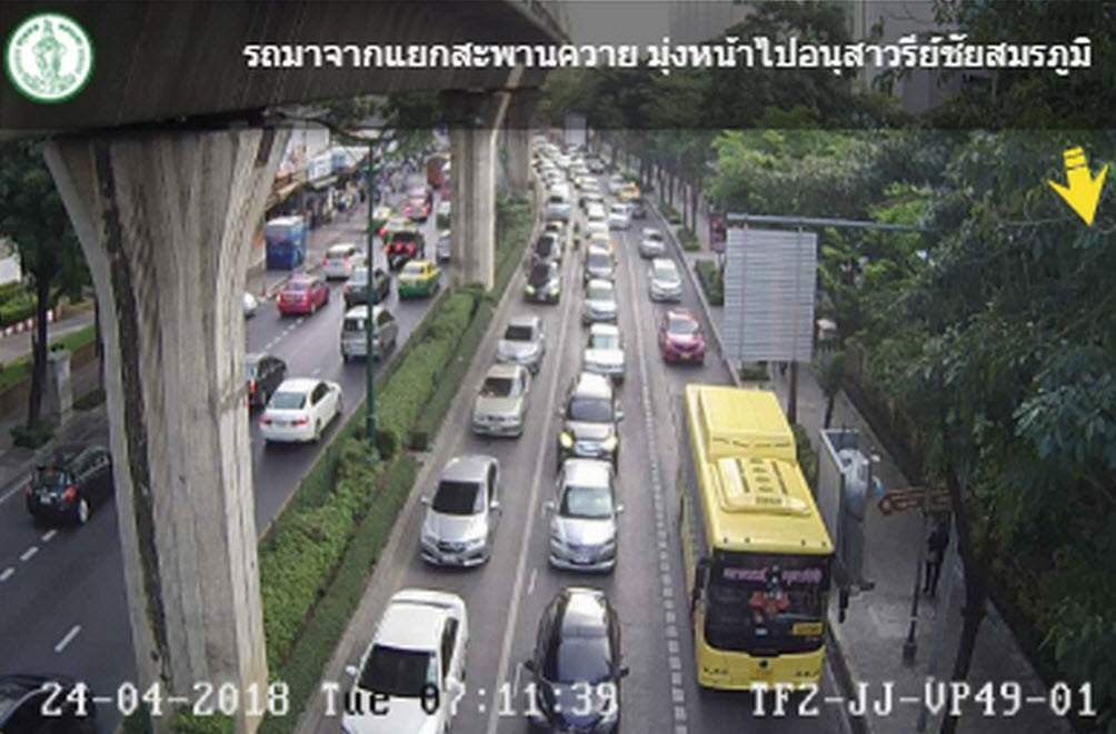 กทม. 24 เม.ย.-สวพ.FM 91 รายงานจราจรเช้าวันอังคาร ถนนพหลโยธิน ขาเข้า มุ่งหน้าอนุสาวรีย์ชัยฯ รถเริ่มเคลื่อนตัวช้า