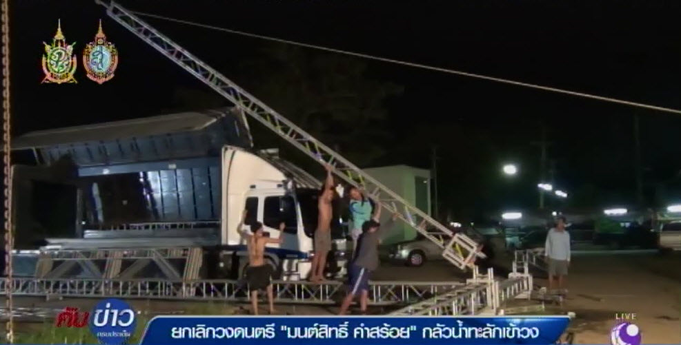 อ่างทอง 29 ก.ย.-ยกเลิกกะทันหันวงดนตรีมนต์สิทธิ์ คำสร้อย งานโอทอปของดีอำเภอป่าโมก หลังน้ำเจ้าพระยาเริ่มซึมเข้ามาในพื้นที่จัดงาน