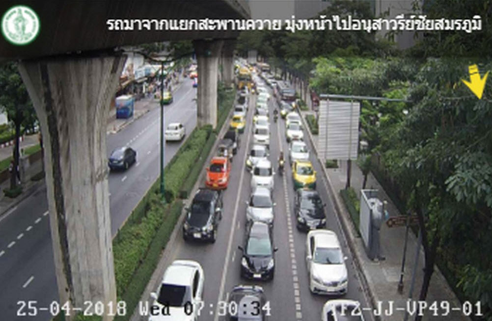 ถนนพหลโยธิน ขาเข้า มุ่งหน้าอนุสาวรียชัยฯ ติดขัด ท้ายสะสมใต้บีทีเอสสนามเป้า ส่วนฝั่งขาออก ยังเคลื่อนตัวได้ดี