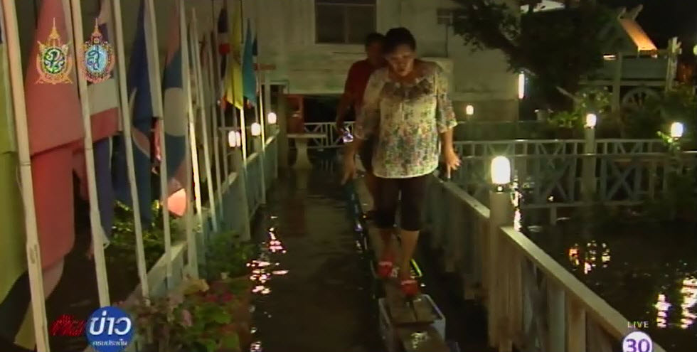 เมื่อเวลา 19.00 น. ที่ผ่านมา ผู้สื่อข่าวลงพื้นที่ตรวจสอบระดับน้ำในแม่น้ำเจ้าพระยา พบว่าบริเวณหมู่ 3 ต.ท้ายเกาะ อ.สามโคก จ.ปทุมธานี บ้านเรือนประชาชนที่อาศัยอยู่ใกล้แม่น้ำเจ้าพระยา ได้มีน้ำเอ่อขึ้นมาท่วมบ้านเรือนประชาชนแล้ว โดยบ้านเรือนส่วนใหญ่พบมีการเตรียมรับมือไว้บ้างในบางส่วน ส่วนบางหลังก็เร่งเก็บข้าวของเพื่อหนีน้ำที่เอ่อขึ้นมาตลอดเวลา ซึ่งระดับน้ำที่เอ่อท่วมขึ้นมานั้นจะท่วมแบบนี้ทั้งคืน จนกระทั่งรุ่งเช้าก็จะลดลงบ้าง