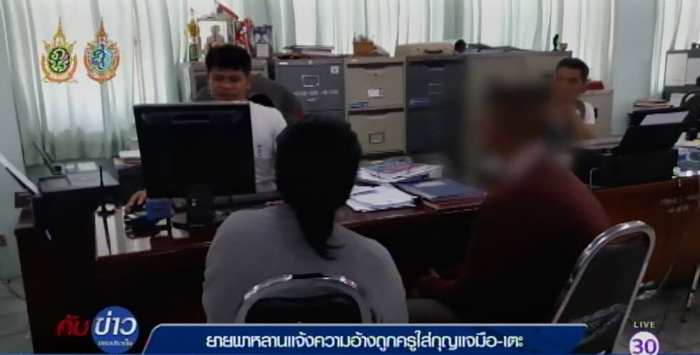 สมุทรปราการ 29 ก.ย.-ยายพาหลานวัย 14 ปี เข้าแจ้งความกับตำรวจ หลังหลานอ้างถูกครูจับใส่กุญแจมือ-เตะเข้าเอวหลายครั้ง