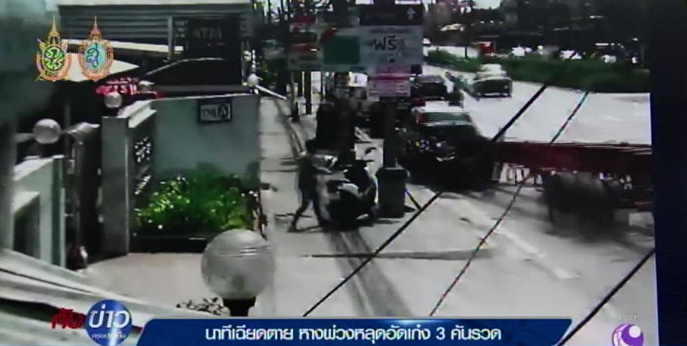 สมุทรปราการ 29 ก.ย.-นาทีเฉียดตาย!! หางรถพ่วงหลุดอัดรถเก๋ง 3 คันรวด บนถนนเทพารักษ์ วงจรปิดจับภาพชัด รถเก๋งรอดหวุดหวิด