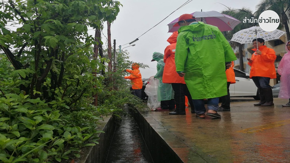 เจ้าหน้าที่สำนักการระบายน้ำ สำนักการโยธา กทม. ลงพื้นที่ตรวจสอบระบบระบายน้ำ ย่านแฟลตเคหะคลองจั่น ซ.เสรีไทย 5 เขตบางกะปิซึ่งเป็นหนึ่งในพื้นที่เสี่ยงน้ำท่วมขังซ้ำซาก พร้อมจัดเก็บเศษขยะตามท่อระบายน้ำ ที่กีดขวางทางน้ำไหล หลังฝนตกหนักเมื่อเช้านี้ ซึ่งบริเวณนี้มีลักษณะเป็นแอ่งกะทะ จึงเป็นหนึ่งในพื้นที่เสี่ยงน้ำท่วมขังซ้ำซาก