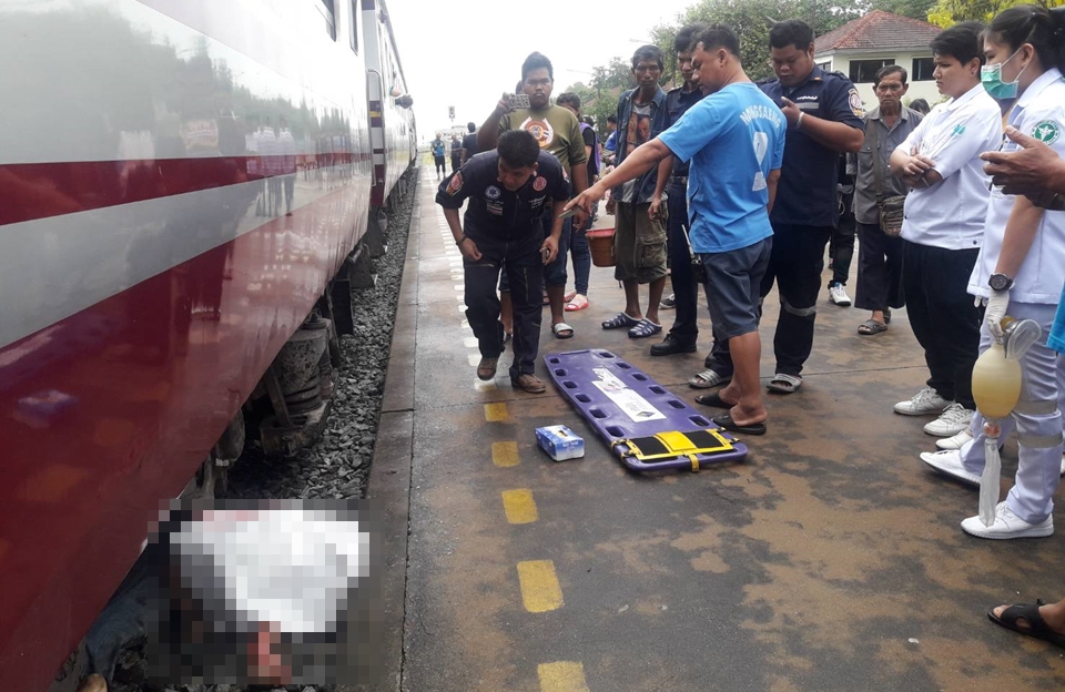 สระบุรี 28 เม.ย.-หนุ่มพนักงานโรงแรมพลัดตกจากรถไฟขณะเตรียมลงที่สถานี ถูกทับร่างแหลกเสียชีวิตติดคาล้อรถไฟ