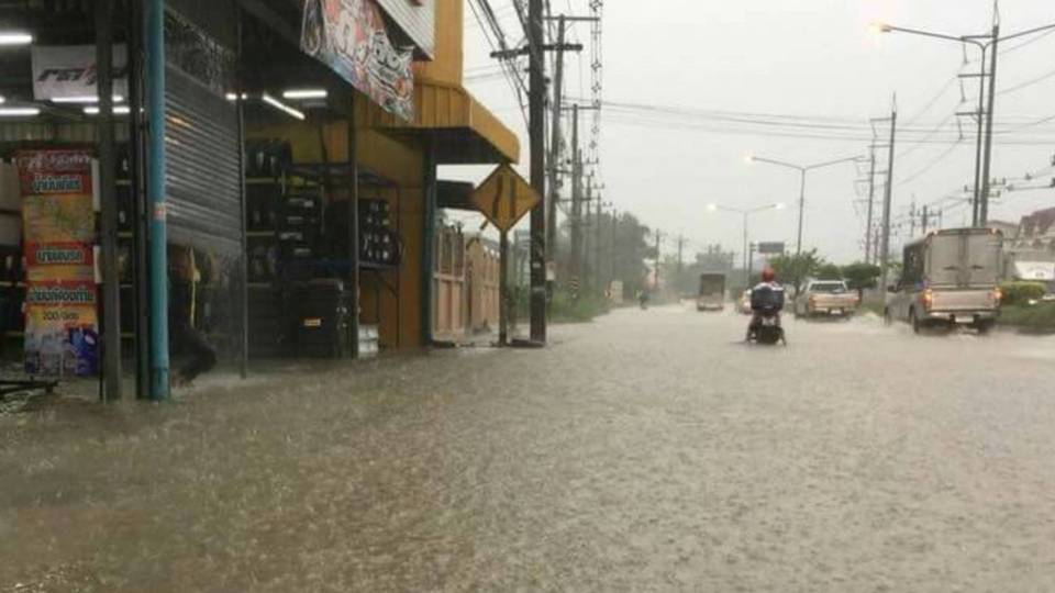 ฝนที่ตกลงมาอย่างหนักยังทำให้ท่อระบายน้ำไม่ทัน ส่งผลให้เกิดน้ำท่วมขังสูงถึง 30 เซนติเมตร ทำให้รถยนต์และรถจักรยานยนต์ที่สัญจรบนถนนสายบ้านบึงทั้งสองฝั่งติดขัด และยังทำให้รถบรรทุกที่วิ่งผ่านบริเวณน้ำท่วมเกิดอุบัติเหตุตกร่องกลางถนน หน่วยกู้ภัยต้องเข้าให้การช่วยเหลืออย่างเร่งด่วน.-สำนักข่าวไทย