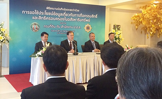 นายศิรินทร์ยา สิทธิชัย เลขาธิการป.ป.ส.ลงนามบันทึกข้อตกลงร่วมกับนายอภินันท์ ซื้อธานุวงศ์ อธิบดีกรมที่ดิน ว่าด้วยการขอใช้ประโยชน์ข้อมูลเกี่ยวกับการถือกรรมสิทธิ์และสิทธิครอบครองในอสังหาริมทรัพย์เพื่อสนับสนุน พ.ร.บ.มาตรการในการปราบปรามผู้กระทำความผิดเกี่ยวกับยาเสพติด พ.ศ.2534 ในการยึด อายัดทรัพย์สินในคดียาเสพติด ซึ่งส่วนใหญ่ทรัพย์ที่ยึดได้จากคดียาเสพติด เป็นที่ดินจำนวนมาก ซึ่งจะช่วยป้องกันการยักย้าย ถ่ายโอนทรัพย์โดยไม่สุจริตของขบวนการค้ายาเสพติด และป.ป.ส.ยังใช้ข้อมูลในการสืบสวนขยายผลจับกุมนักค้ายาเสพติดได้เพิ่มขึ้น โดยทั้ง 2 หน่วยได้เชื่อมโยงระบบคอมพิวเตอร์ในลักษณะเว็บเซอร์วิส ทำให้สืบค้นตรวจสอบพิกัดและอายัดที่ดินนักค้ายาเสพติดได้ทันที