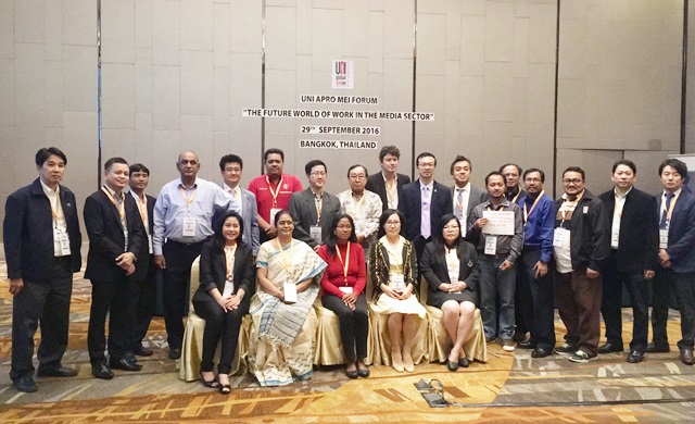 ในการประชุมใหญ่สามัญภาคพื้นเอเชียแปซิฟิกของสหพันธ์สหภาพแรงงานโลก ภาคอุตสาหกรรมสื่อสารมวลชน และการบัญเทิงสากล หรือยูนิเม (UNI MEI) มีผู้แทนสหภาพแรงงานจากสาขาสื่อสารมวลชนและการบันเทิงจาก 18 ประเทศในเอเชียแปซิฟิคเดินทางมาร่วมประชุมในประเทศไทย โดยมีผู้แทนสหภาพแรงงานรัฐวิสาหกิจ บมจ.อสมท เข้าร่วมประชุม ภายใต้แนวคิดความเปลี่ยนแปลงของเทคโนโลยีที่พัฒนาไม่หยุดนิ่ง ส่งผลต่อสื่อทุกแขนงที่ต้องปรับตัว เพื่อลดปัญหาการตกงานของภาคแรงงานในวงการสื่อสารมวลชน