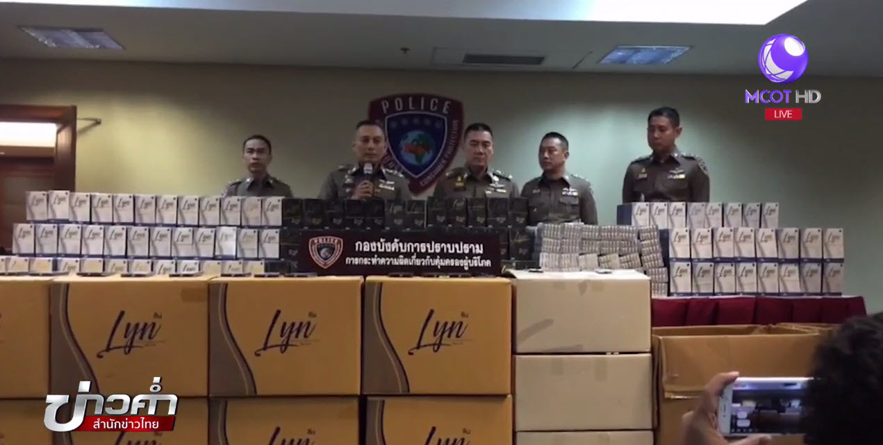 พล.ต.อ.จักรทิพย์ ชัยจินดา ผู้บัญชาการตำรวจแห่งชาติ แถลงผลการตรวจยึดผลิตภัณฑ์เสริมอาหารและลดน้ำหนัก Lyn หลังสำนักงานคณะกรรมการอาหารและยาตรวจพบสารต้องห้ามในผลิตภัณฑ์ และพบผู้เสียชีวิตจากการทานอาหารเสริมชนิดนี้ในช่วง 1 เดือนที่ผ่านมา หลังจากนั้นตำรวจจึงเข้าตรวจค้นบริษัท Food science supply sevice จำกัด ในปทุมธานี ซึ่งเป็นโรงงานบรรจุผลิตภัณฑ์ ก่อนยึดของกลางเป็น Detox Lyn (กล่องสีดำ) ได้ 3,500 แผง และผลิตภัณฑ์ Lyn block burn break build (กล่องสีขาว) อีก 1,400 แผง รวมถึงผลิตภัณฑ์ที่บรรจุในซองสีแดง ไม่แสดงสลาก 200 ซอง และผลิตภัณฑ์ผงสีน้ำตาลอ่อนที่ยังไม่ได้บรรจุแคปซูล 6 ถุง หนักรวม 240 กิโลกรัม อีกทั้งยังตรวจค้นบริษัทเอกอัครินทร์ จำกัด ที่ชลบุรี โดยมี น.ส.พิมพ์ลภัทร เอกอัครินทร์ เป็นเจ้าของ ซึ่งบริษัทแห่งนี้เปิดเป็นร้านจำหน่ายผลิตภัณฑ์ Lyn สามารถยึด Lyn กล่องดำได้ 1,000 กล่อง และ Lyn กล่องขาว 3,000 กล่อง ของกลางทั้งหมดที่ตรวจยึดได้ครั้งนี้รวม 62,000 กล่อง มูลค่ากว่า 24 ล้านบาท