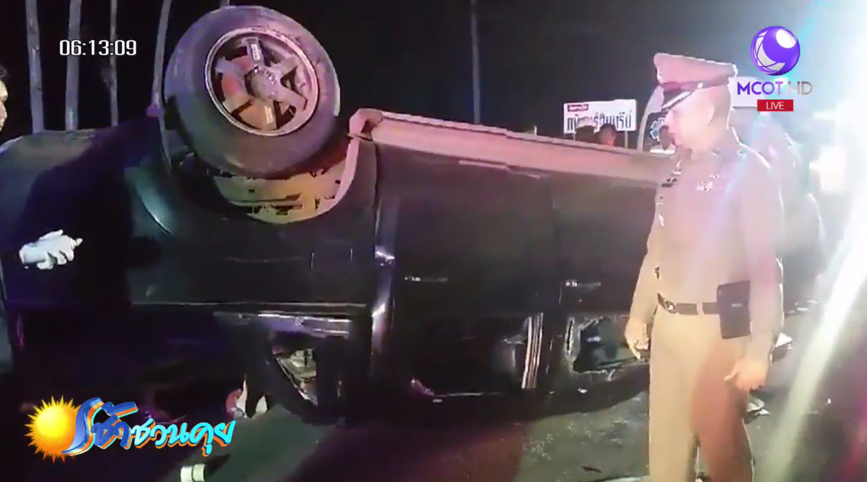 ในที่เกิดเหตุพบรถยนต์กระบะโตโยต้า วีโก้ สีดำ แต่งยกสูง ทะเบียน ชภ 9028 กรุงเทพมหานคร พลิกคว่ำตกอยู่ข้างทาง มีผู้ได้รับบาดเจ็บถูกรถทับติดอยู่ภายในเป็นชาย 1 คน อาสาสมัครกู้ภัยเร่งใช้เครื่องมือตัดถ่างเพื่อนำผู้ได้รับบาดเจ็บส่ง โรงพยาบาล แต่เนื่องจากผู้บาดเจ็บมีอาการสาหัส ทำให้ชีวิตในเวลาต่อมา ส่วนผู้บาดเจ็บรายอื่นๆ ถูกนำส่ง โรงพยาบาลศรีมหาโพธิ และหนึ่งในนั้นอาการสาหัส ถูกส่งต่อไปยังโรงพยาบาลเจ้าพระยาอภัยภูเบศร