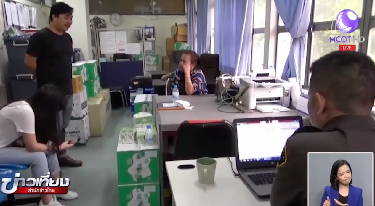 นางเรวดี หาแก้ว หรือ ป้าติ้น ผู้ต้องหาตามหมายจับศาลอาญา ข้อหาแจ้งความเท็จ เข้าพบ ร.ต.อ.ณรงค์ สุวรรณรักษ์ รองสารวัตรสอบสวน กองบังคับการปราบปราม เพื่อมอบตัวหลังตำรวจกองปราบขออกหมายจับเพิ่มกรณีอ้างว่าถูกลอตเตอรี่รางวัลที่ 1 มูลค่า 30 ล้านบาท เหตุเกิดพื้นที่ สภ.ดงเย็น จ.อุดรธานี