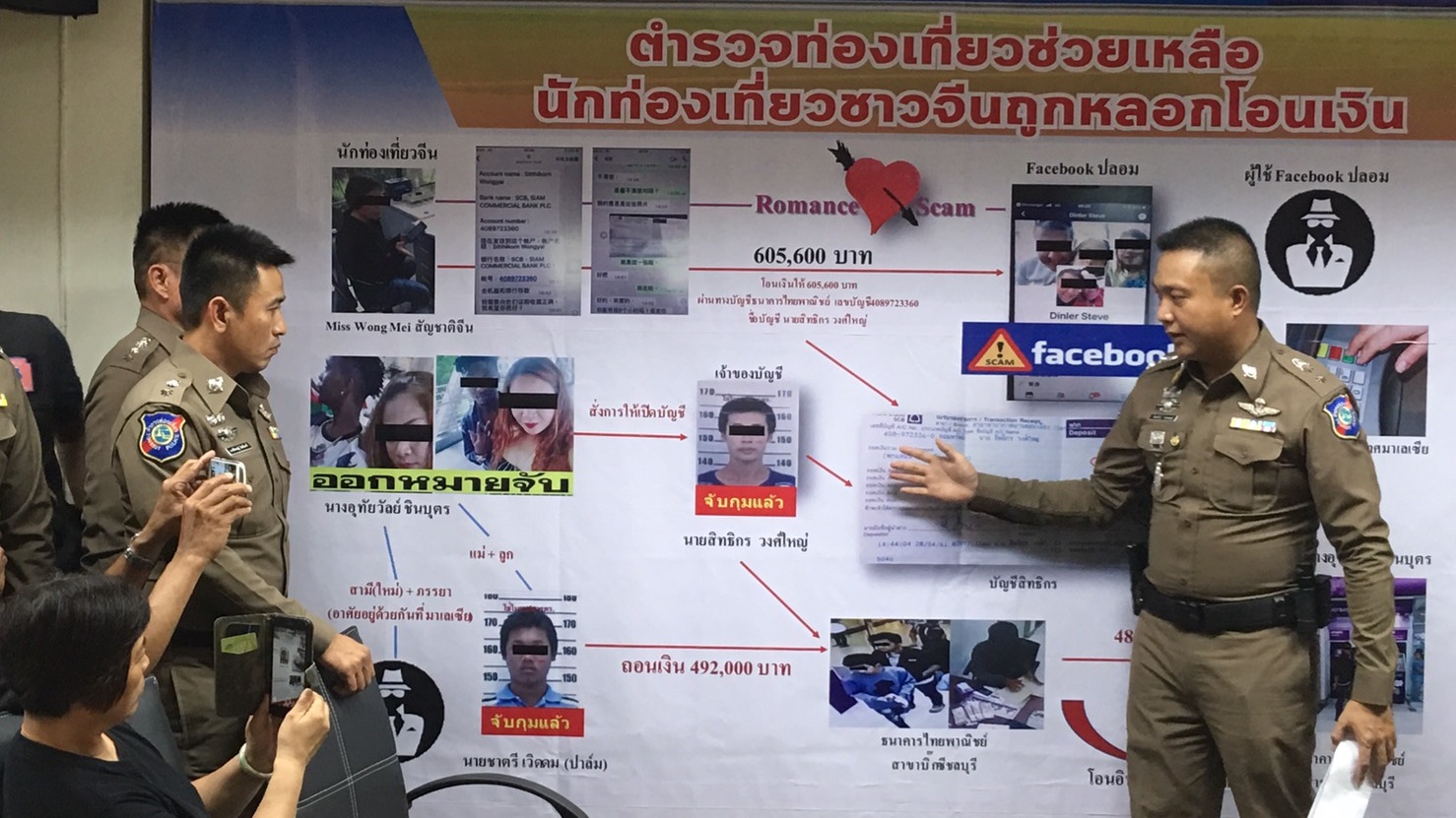 รอง ผบช.ทท.กล่าวว่า แก๊งนี้มีนางอุทัยวัลย์ ชินบุตร สามีชาวผิวสี พักอยู่มาเลเซีย ปลอมเฟซบุ๊คพูดคุยกับผู้เสียหาย โดยให้นายชาตรี ลูกชายอยู่ประเทศไทยกับเพื่อนคือนายสิทธิกรเปิดบัญชีรับโอนเงินจากผู้เสียหาย ก่อนโอนไปเข้าบัญชีนางอุทัยวัลย์ หลังปราบปรามแก๊งโรแมนซ์สแกม หรือ แสร้งรักออนไลน์ ส่วนใหญ่เป็นชาวผิวสีไม่กล้าใช้ประเทศเป็นฐานที่ตั้งในการหลอกลวง ทำให้ไปตั้งฐานในต่างประเทศ แต่ยังใช้ประเทศไทยในการรับโอนเงินจากผู้เสียหายเบื้องต้นได้ประสานทางการมาเลเซียเพื่อตามจับกุมผู้ร่วมขบวนการที่เหลือ.-สำนักข่าวไทย