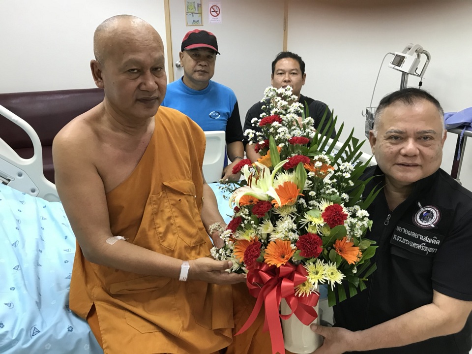 พ.ต.อ. ภูวดิท ชนะคชภัทร์ รองผู้บังคับการตำรวจภูธรจังหวัดสิงห์บุรี พร้อมคณะศิษยานุศิษย์ เข้ากราบเยี่ยมอาการอาพาธพระครูเกษมจันทวิมล หรือพระอาจารย์แดง อายุ 58 ปี เจ้าอาวาสวัดป้อมรามัญ ตำบลสวนพริกไทย อำเภอพระนครศรีอยุธยา เกจิดังด้านเมตตามหานิยม ยังคงนอนรักษาตัวที่โรงพยาบาลราชธานี จ.พระนครศรีอยุธยา หลังจากเกิดอาพาธกะทันหันเมื่อวันที่ 30 เม.ย.ที่ผ่านมา แพทย์ตรวจพบว่าเส้นเลือดหัวใจอุดตัน จึงได้ผ่าตัดรักษาให้อย่างเรียบร้อยในระดับหนึ่ง แม้ขณะนี้ปลอดภัยแล้ว แต่ยังต้องอยู่โรงพยาบาลอีก 1 สัปดาห์ และแพทย์เตรียมส่งตัวพระอาจาร์แดงไปผ่าตัดเส้นเลือดหัวใจอุดตันอีกครั้ง เป็นการผ่าตัดรอบที่ 2 ในสิ้นเดือนนี้ที่โรงพยาบาลภูมิพล เพราะยังมีเส้นเลือดหัวใจอีกส่วนหนึ่งที่อุดตัน.-สำนักข่าวไทย