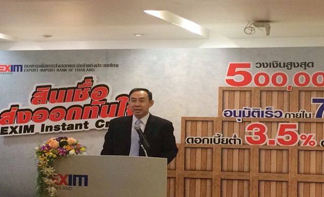 นายพิศิษฐ์ กล่าวว่า ธนาคารจึงให้สินเชื่อเพื่อช่วยเหลือผู้ส่งออกไทยให้มี เงินทุนหมุนเวียน “สินเชื่อส่งออกทันใจ” (EXIM Instant Credit) เพื่อใช้สินเชื่อหมุนเวียนระยะเวลาไม่เกิน 6 เดือน พร้อมบริการรับซื้อตั๋วส่งออก อัตราดอกเบี้ยต่ำร้อยละ 3.5 ต่อปี ใช้เพียงบุคคลค้ำประกัน และออร์เดอร์ส่งซื้อสินค้า อนุมัติเร็วภายใน 7 วันทำการ วงเงินสูงสุด 500,000 บาทต่อราย คาดว่าจะช่วยให้ผู้ประกอบการ 300 ราย สินเชื่อประมาณ 150 ล้านบาท หวังส่งเสริมเริ่มต้นหรือขยายธุรกิจส่งออกได้มากขึ้น ทั้งนี้ เพื่อหวังช่วยเหลือเอสเอ็มอีซึ่งเป็นกลุ่มผู้ประกอบการส่วนใหญ่ของประเทศกว่า 2 ล้านราย ปัจจุบันมีผู้ประกอบการที่มีศักยภาพเป็นผู้ส่งออกเอสเอ็มอี ประมาณ 24,000 ราย หรือประมาณร้อยละ 10 ของผู้ประกอบการเอสเอ็มอีทั้งหมด และในช่วงกระแสเงินทุนผันผวน จึงส่งเสริมให้ผู้ประกอบการประกันการส่งออกเพิ่มด้วยอีกทางหนึ่ง เพราะหลังจากได้ออกผลิตภัณฑ์ประกันการส่งออก วงเงิน 500,000 บาท ค่าธรรมเนียมประกันส่งอออกเพียง 1,500 บาท มีผู้ส่งออกยื่นประกันแล้ว 450 ราย นอกจากนี้ ยังส่งเสริมการขายสินค้าผ่านทางออนไลน์ ซึ่งเป็นอีกช่องทางหนึ่งที่จะช่วยให้ผู้ประกอบการเจอลูกค้าใหม่ ๆ โดยไม่ต้องผ่านพ่อค้าคนกลาง