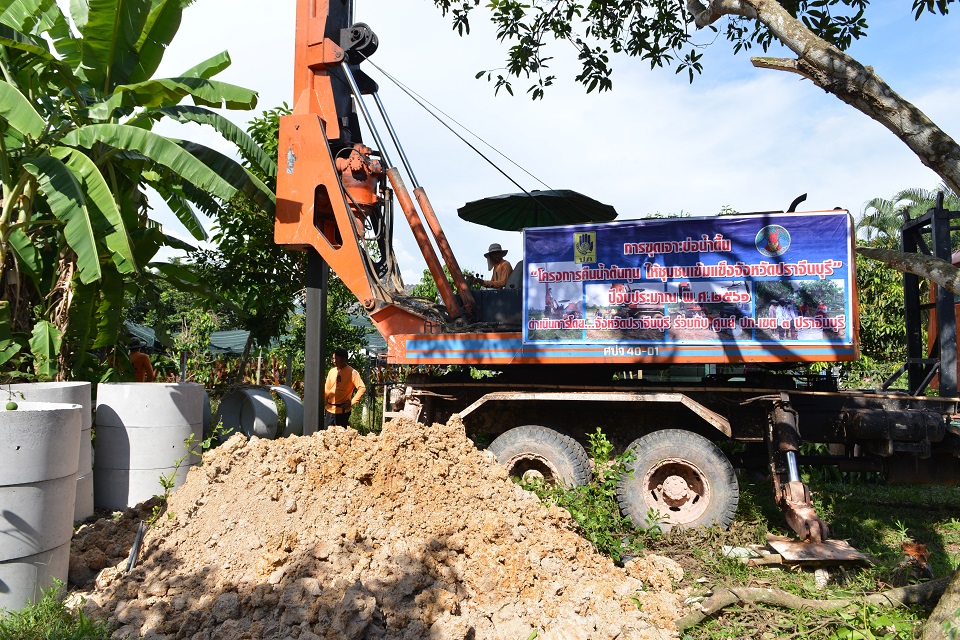 นางจรัส ใยเยื่อ ผู้อำนวยการศูนย์ป้องกันและบรรเทาสาธารณภัย เขต 3 ปราจีนบุรี จัดชุดเจ้าหน้าที่นำเครื่องอุปกรณ์ขุดเจาะบ่อน้ำตื้นให้กับเกษตรกรในพื้นที่ตำบลดงขี้เหล็ก อ.เมือง เพื่อเก็บน้ำไว้ใช้อุปโภคบริโภคและเพาะปลูกช่วงฤดูแล้ง ตามโครงการคืนน้ำต้นทุนให้ชุมชนเข้มแข็งจังหวัดปราจีนบุรี