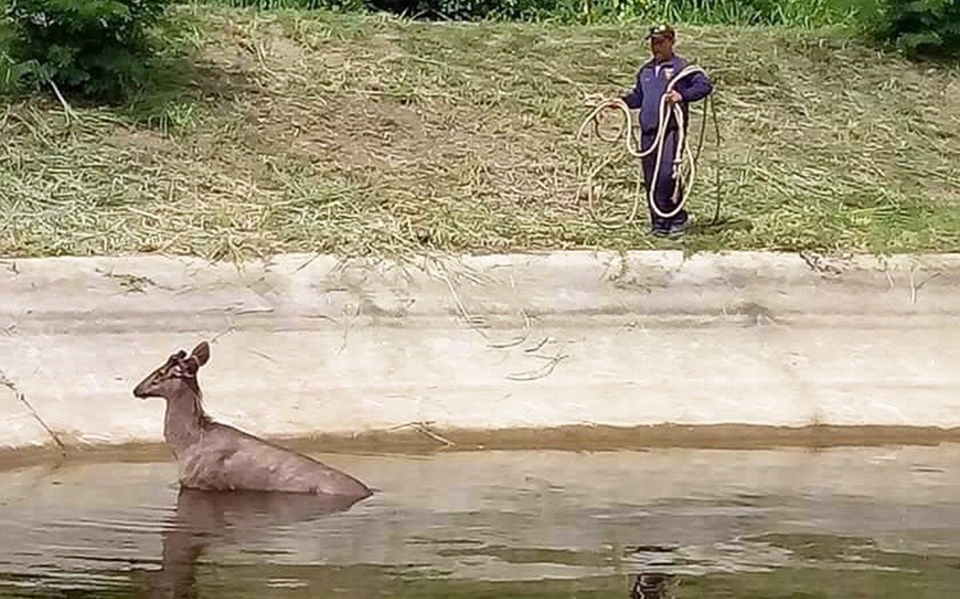 พบกวางเพศผู้ อายุราว 5 ปี พยายามว่ายตะเกียกตะกายหนีตายขึ้นจากอ่างเก็บน้ำ ซึ่งขอบอ่างเป็นปูนซิเมนต์ลาดชัน เจ้าหน้าที่ต้องขึ้นเครนใช้เชือกเพื่อคล้องตัวกวาง แต่เป็นไปด้วยความลำบาก เนื่องจากกวางตื่นกลัวคน ไม่ยอมให้เข้าใกล้ หลังใช้เวลานานพักใหญ่ จึงสามารถนำกวางขึ้นจากน้ำด้วยความปลอดภัย ก่อนนำไปปล่อยคืนสู่ธรรมชาติ