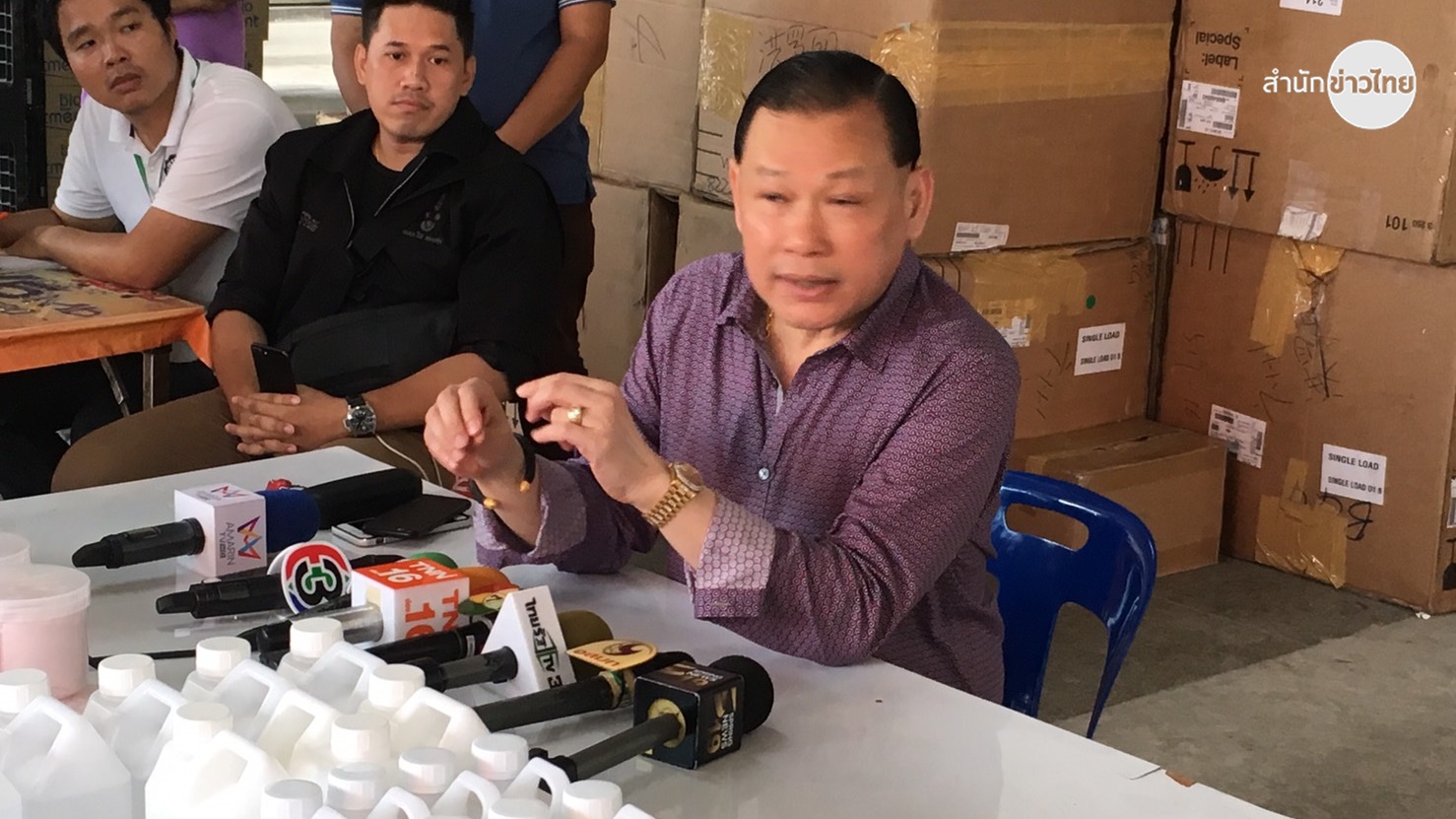 กทม.5 พ.ค.61- “สันธนะ”แถลงขอโทษปล่อยปละละเลยให้ตลาดใหม่ดอนเมืองมีโรงงานผลิตเครื่องสำอางผิดกฎหมายอยู่ในพื้นที่ ลั่นฟ้องกลับตำรวจทำให้เกิดความเสียหาย
