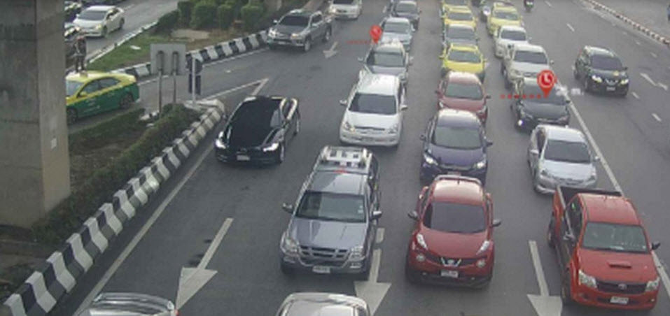 ถนนวิภาวดี-รังสิต ขาเข้า มุ่งหน้าใต้ด่วนดินแดง รถเคลื่อนตัวได้ช้า ท้ายสะสมอยู่ที่หน้ามหาวิทยาลัยหอการค้าไทย
