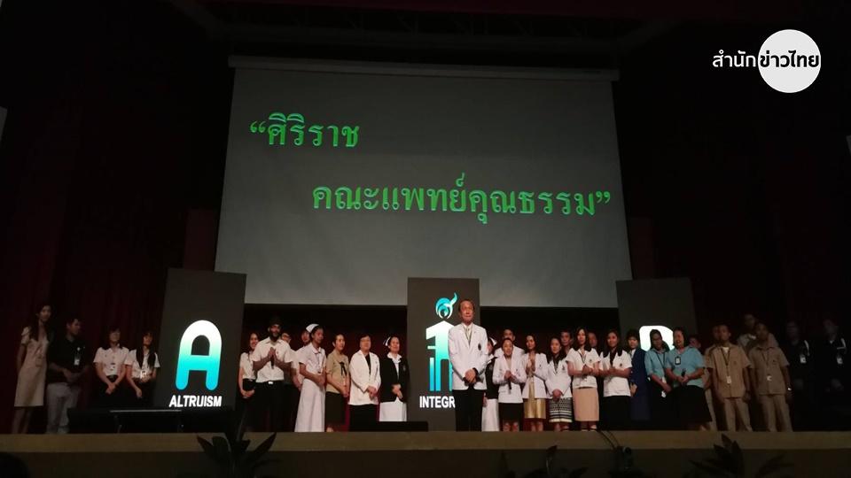 ศิริราช 7พ.ค.- ศิริราช ประกาศเจตนารมณ์ “คณะแพทย์คุณธรรม” มุ่งหวังเปลี่ยนจากนามธรรมเป็นรูปธรรม ขับเคลื่อนสู่การเป็นองค์กรแห่งคุณธรรม และความโปร่งใส คำนึงถึงประโยชน์ส่วนรวมเป็นหลัก