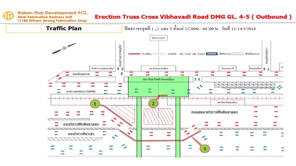 กรุงเทพฯ 9 พ.ค.- บก.จร.แจ้งปิดถนนวิภาวดีรังสิต (ขาออก) เพื่อยกทางเดินสกายวอล์ก รถไฟฟ้าสายสีแดง เริ่ม 12-14 พ.ค.นี้ ตั้งแต่เวลา 22.00-04.00 น.