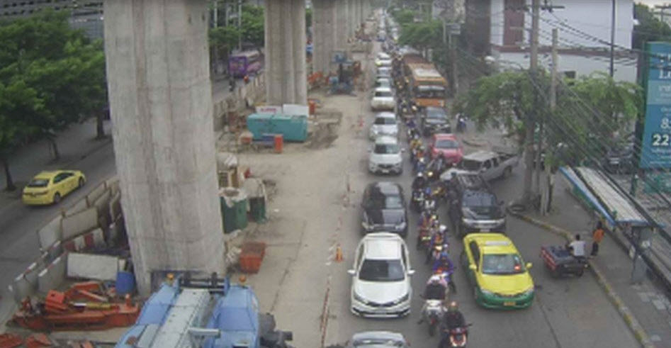 ถนนพหลโยธิน ขาเข้า มุ่งหน้าไปแยกลาดพร้าว การจราจรติดขัด ท้ายสะสมหน้ากองปราบปราม มุ่งหน้าแยกเกษตร – เสนานิคม – แยกรัชโยธิน ท้ายสะสมวงเวียนบางเขน กระทบถนนรามอินทรา