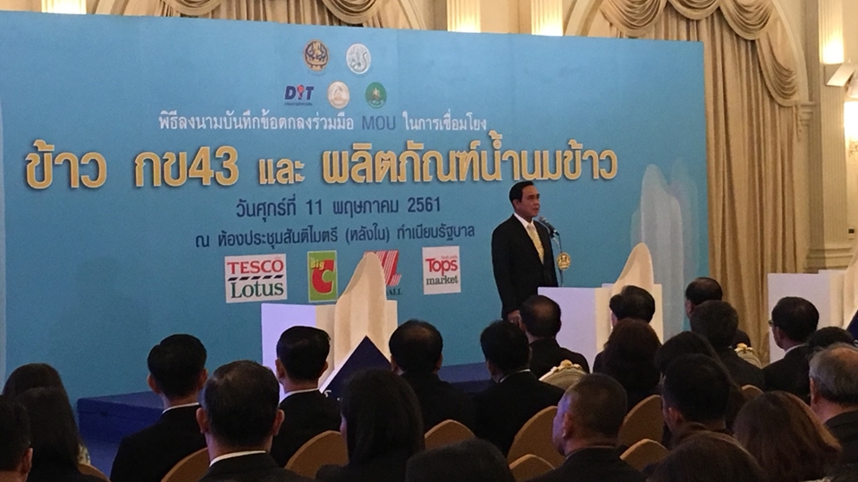 พล.อ.ประยุทธ์ จันทร์โอชา นายกรัฐมนตรีและหัวหน้าคณะรักษาความสงบแห่งชาติ (คสช.) เป็นประธานในพิธีลงนามบันทึกข้อตกลงความร่วมมือ (MOU) การเชื่อมโยงข้าว กข43 และผลิตภัณฑ์น้ำนมข้าว ที่จัดขึ้นโดยกระทรวงพาณิชย์ ที่ตึกสันติไมตรี ทำเนียบรัฐบาล โดยนายกรัฐมนตรี กล่าวตอนหนึ่งถึงกรณีที่นายโดนัลด์ ทรัมป์ ประธานาธิบดีสหรัฐอเมริกา ระบุว่า จะพบกับนายคิม จอง อึน ผู้นำเกาหลีเหนือ ที่ประเทศสิงคโปร์ ในวันที่ 12 มิถุนายนนี้ ว่า เมื่อเช้านี้ที่มีข่าวการพูดคุยเรื่องคาบสมุทรเกาหลี ซึ่งสุดท้ายตัดสินใจเลือกประเทศเพื่อนบ้านของไทย ทำให้หลายคนวิพากษ์วิจารณ์ว่าเป็นเพราะไทยมีรัฐบาลแบบนี้ จึงไม่ได้ถูกเลือก ซึ่งเป็นคนละเรื่องกัน และเหตุผลที่สหรัฐฯ และเกาหลี เลือกประเทศสิงคโปร์ เพราะเป็นประเทศที่สงบ ประชาชนมีระเบียบวินัย และเคารพกฎหมาย
