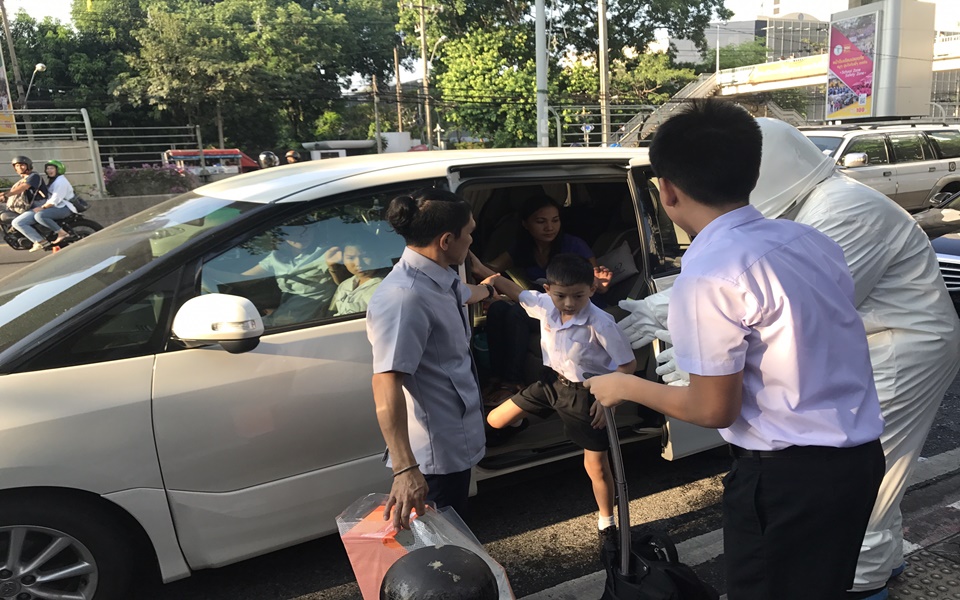 ส่วนผู้ปกครองให้ตรวจสอบเส้นทางและเข้าใจหากฝนตกก็จะทำให้การจราจรติดขัดมากขึ้น พร้อมเห็นใจเจ้าหน้าที่ตำรวจที่บังคับใช้กฏหมายจราจรอย่างเต็มที่ โดยตำรวจไม่ต้องการมีปัญหากับผู้ปกครองและผู้ใช้รถ จึงนำเทคโนโลยีเช่นกล้องตรวจจับการทำผิดกฏจราจร หรือ เลนส์เชนจ์ เพื่้อเป็นหลักฐานป้องกันกากรระทบกระทั่งกับผู้ที่ทำผิดกฏจราจร
