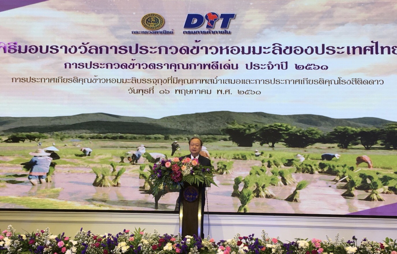 นายสนธิรัตน์ สนธิจิรวงศ์ รัฐมนตรีว่าการกระทรวงพาณิชย์ กล่าวว่า แนวโน้มผลผลิตข้าวปีนี้จะมากขึ้นกว่าร้อยละ 10-20 เนื่องจากสภาพอากาศค่อนข้างดี แต่ทั้งนี้จะเร่งส่งเสริมคุณภาพข้าวของไทย เพื่อให้เกิดเสถียรภาพด้านราคาในระยะยาว และทำให้ไทยคงความเป็นผู้นำข้าวหอมมะลิของโลก โดยคาดว่ามาตรการดูแลราคาข้าวที่รัฐบาลจะออกมาทำให้ราคาข้าวเปลือกหอมมะลิปีนี้ไม่ต่ำกว่า 15,000 บาทต่อตัน ส่วนข้าวเปลือกเจ้า คาดว่าจะไม่ต่ำกว่า 8,000 บาทต่อตัน โดยปีนี้ถือเป็นปีที่ราคาสินค้าเกษตรดีขึ้นและสินค้าเกษตรของไทยเป็นที่ต้องการของตลาดโลกมากขึ้น