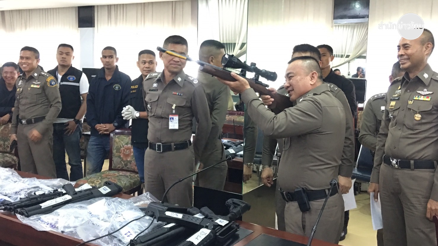 พล.ต.อ.ศรีวราห์ รังสิพรหมณกุล รองผบ.ตร. พร้อมกองพิสูจน์หลักฐานกลาง สำนักงานตำรวจแห่งชาติ ตรวจสอบอาวุธปืน 23 กระบอกพร้อมเครื่องกระสุนปืน 1,055 นัด ที่ตำรวจกองปราบ ยึดมาจากบ้านเลขที่ 265/154 หมู่บ้านแห่งหนึ่ง ถ.ราษฎร์พัฒนา (ซอยมิสทีน) เขตสะพานสูง ของ ร.ท.ฐิติทัศน์ นิพนธ์พิทยา นายทหารประจำ ศูนย์รักษาความปลอดภัย กองบัญชาการกองทัพไทย หลังสืบทราบว่า น.ส.นุชรา สิทธินอก อายุ 32 ปี ชาว จ.บุรีรัมย์ ซึ่งเป็นแม่บ้านและพักอยู่ในบ้านหลังดังกล่าว เกี่ยวข้องกับคดีทุจริตเงินงบประมาณเผยแผ่พระพุทธศาสนา หรือ เงินทอนวัด จากการตรวจสอบเส้นทางการเงิน พบเป็นนอมินี เปิดบริษัทและรับโอนเงินจากพระชั้นผู้ใหญ่ วัดดังในพื้นที่กรุงเทพฯ รวม 25 ล้านบาท จึงนำกำลังเข้าตรวจค้น พบอาวุธปืนดังกล่าว