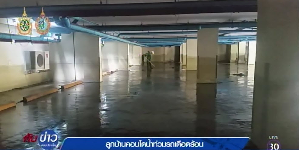 ล่าสุดเมื่อช่วงบ่ายวันนี้สามารถระบายน้ำออกจากลานจอดรถจนหมดแล้ว ซึ่งขณะนี้อยู่ระหว่างการทำความสะอาดและรอตู้คอนโทลไฟแห้ง เพื่อจะทำการเชื่อมต่อไฟฟ้าให้กับลูกบ้าน