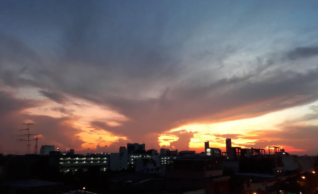 สำหรับกรุงเทพฯ และปริมณฑล มีเมฆเป็นส่วนมาก กับมีฝนฟ้าคะนอง ร้อยละ 40 ของพื้นที่ อุณหภูมิต่ำสุด 26-28 องศาเซลเซียส อุณหภูมิสูงสุด 33-36 องศาเซลเซียส