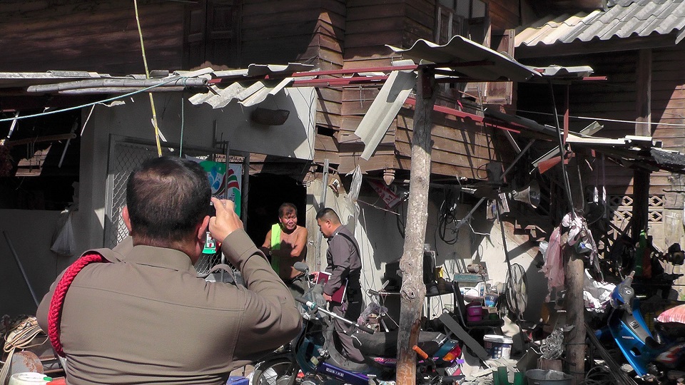 เมื่อเวลา 09.00 น. (18 พ.ค.) ร.ต.อ.โยธิน เทศศรีเมือง รองสารวัตร (สอบสวน) สภ.แม่ทะ จ.ลำปาง รับแจ้งเหตุระเบิดภายในบ้านสองชั้นครึ่งตึกครึ่งไม้ในหมู่บ้านป่าม่วง ม.8 ต.น้ำโจ้ อ.แม่ทะ จึงประสานชุดเจ้าหน้าที่เข้าตรวจสอบพบว่าสภาพบ้านพังเสียหาย หลังคากระเบื้องแตก และมีผู้บาดเจ็บ 2 ราย คือ นายมานิตย์ ปงอุตทา อายุ 46 ปี กับนายคำ ใจเชื้อ อายุ 66 ปี โดยเฉพาะนายมานิตย์ อาการสาหัส นิ้วชี้ซ้ายขาด ตาทั้งสองข้างพร่ามัว ถูกนำส่งโรงพยาบาลแม่ทะ