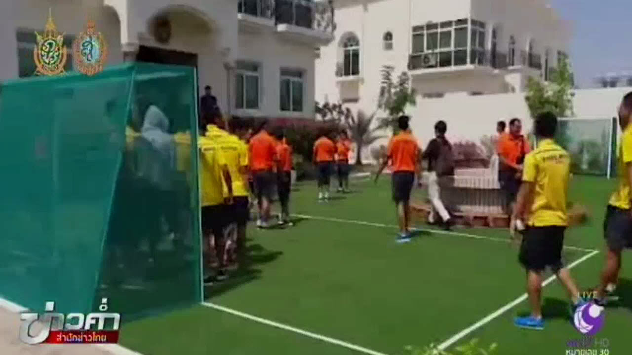 หลังจากนักฟุตบอลทีมชาติไทย เดินทางถึงกรุงอาบูดาบี ประเทศสหรัฐอาหรับเอมิเรตส์ เมื่อช่วงกลางดึกที่ผ่านมา ก่อนเข้าพักที่โรงแรมดุสิตธานี ล่าสุดเมื่อช่วงเช้าที่ผ่านมาตามเวลาท้องถิ่น นักเตะช้างศึกรับประทานอาหารเช้าก่อนพักผ่อนตามอัธยาศัย จากนั้นเดินทางไปยังบ้านพักของ เรือโทโกเมศ กมลนาวิน เอกอัครราชฑูตไทย ณ กรุงอาบูดาบี เพื่อรับประทานอาหารกลางวัน ขณะเดียวกันช่วงสายตามเวลาท้องถิ่น เจ้าหน้าที่ของสมาคมกีฬาฟุตบอลฯ ได้เดินทางไปยังสนามของโรงแรมอาเหม็ดออฟฟิเชอร์คลับ ที่ทีมชาติไทยต้องใช้ซ้อมแทนสนามอาเหม็ดฟอร์ซ ที่มีปัญหาเรื่องสภาพสนาม โดยการซ้อมวันนี้ซึ่งเป็นวันแรก จะเริ่มเวลา 20.00 น. ตามเวลาไทย “โค้ชซิโก้” จะเน้นเรื่องการยืดเส้นยืดสายปรับสภาพร่างกายให้เข้าที่ หลังนักเตะล้ามาจากการรับใช้สโมสรและเดินทาง ส่วนสภาพอากาศของยูเออีในขณะนี้ใกล้เคียงกับประเทศไทยคือ 33-35 องศาเซลเซียส ซึ่งใกล้เคียงกับประเทศไทย ทำให้นักกีฬาไม่ต้องใช้เวลาในการปรับตัวมาก