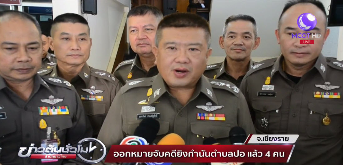 เชียงราย 18 พ.ค. – พล.ต.ท.พูลทรัพย์ ประเสริฐศักดิ์ ผู้บัญชาการตำรวจภูธรภาค 5 เปิดเผยว่า ศาลจังหวัดเชียงรายได้อนุมัติออกหมายจับ 4 ผู้ต้องหาใช้อาวุธสงครามยิงถล่มนายทวีศักดิ์ ยอดมณีบรรพต กำนัน ต.ปอ อ.เวียงแก่น จ.เชียงราย และประธานชมรมม้งแห่งประเทศไทย และครอบครัว จนทำให้กำนันและลูกชายวัย 3 ขวบ บาดเจ็บสาหัส ส่วนภรรยาและลูกสาววัย 3 ขวบ เสียชีวิต เมื่อวันที่ 24 เมษายนที่ผ่านมาแล้ว
