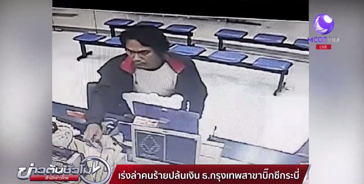 ความคืบหน้าเหตุคนร้ายปืนจี้ยิงเงินธนาคารกรุงเทพสาขาบิ๊กซีกระบี่ ได้เงินไป 1.1 แสนบาท ขณะนี้ตร.กำลังแกะรอยเส้นทางหลบหนี หลังพบเสื้อแจ็กเก็ตที่คนร้ายถอดทิ้งไว้ในพงหญ้าหน้าห้างบิ๊กซี และจากการสอบสวนพนักงานของธนาคารเบื้องต้นพบว่า คนร้ายเป็นชายสวมเสื้อแจ็กเก็ตแขนยาว สีดำ คอเสื้อสีแดง สวมกางเกงขายาวสีดำ ไว้ผมยาวเกือบประบ่า เดินถือกระเป๋าสีขาวเข้ามาภายในห้าง จากนั้นคนร้ายได้ยื่นกระเป๋าผ้าให้พนักงานแล้วชักอาวุธปืนสั้นออกมาให้เห็นเล็กน้อย บอกว่าให้เอาเงินใส่กระเป๋า ทางพนักงานจึงได้รับมาแล้วหยิบเงินในลิ้นชักใส่ให้ รวม 119,781 บาท จากนั้นคนร้ายวิ่งหลบหนีไปใช้เวลาไม่กี่นาทีเท่านั้น ขณะเกิดเหตุมีพนักงานอยู่ภายในธนาคารประมาณ 3 คน ซึ่งกำลังจะปิดทำการแล้ว.-สำนักข่าวไทย