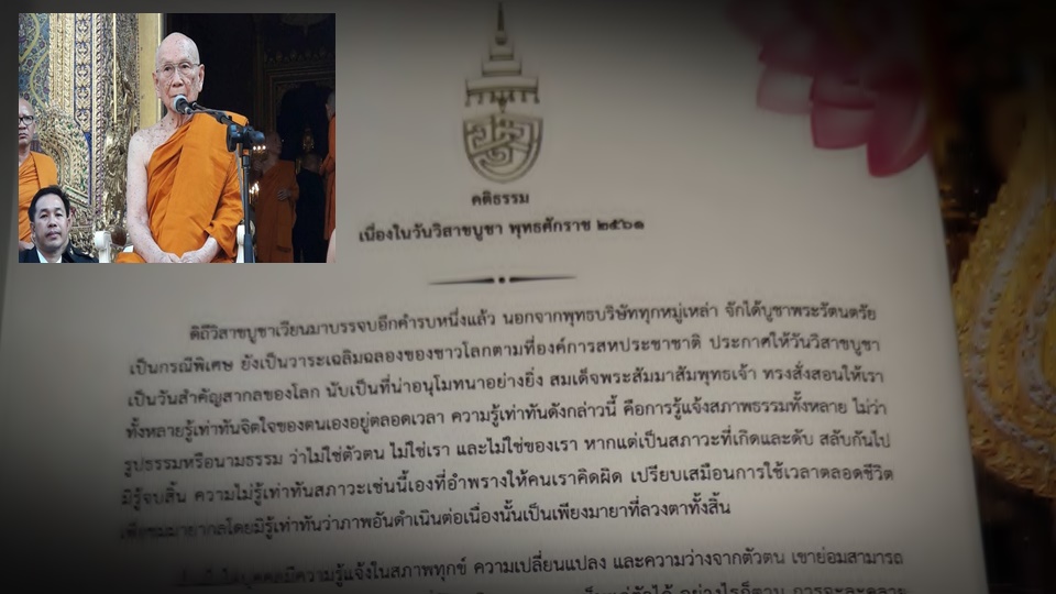 สมเด็จพระอริยวงศาคตญาณ สมเด็จพระสังฆราช สกลมหาสังฆปริณายก(อัมพร อัมพโร) ประทานคติธรรม เนื่องในวันวิสาขบูชา ปี2561