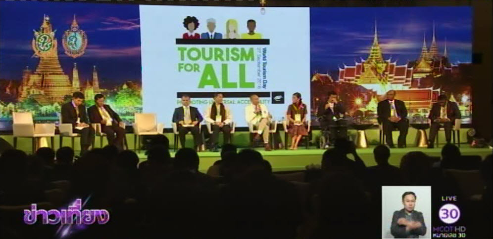กทม. 27 ก.ย. – เปิดงานวันท่องเที่ยวโลก World Tourism Day 2016 ซึ่งปีนี้ไทยเป็นเจ้าภาพ ไฮไลต์ในช่วงเช้าคือประเด็นการพัฒนาการท่องเที่ยวที่นอกจากพัฒนาสถานที่ท่องเที่ยวแล้วยังต้องเปิดเส้นทางการท่องเที่ยวรองรับให้คนปกติและผู้พิการให้สามารถเข้าถึงการท่องเที่ยวในทุกรูปแบบได้