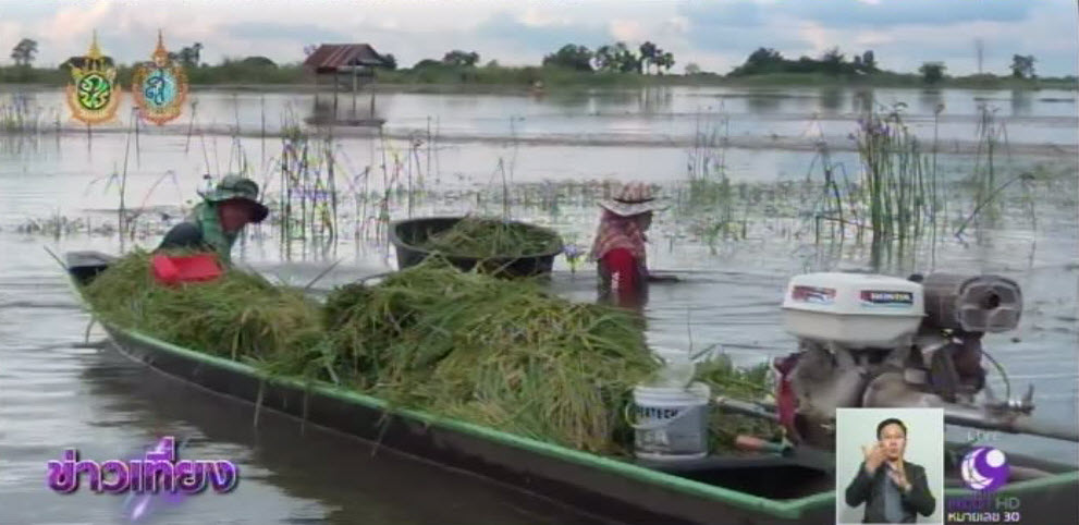 ลงมาที่ จ.นครสวรรค์ เกษตรกรผู้ปลูกมันสำปะหลังต้องเก็บเกี่ยวผลผลิตที่ถูกน้ำท่วมสูงเกือบครึ่งเมตร หลังปริมาณน้ำพระยาเพิ่มสูงขึ้นอย่างรวดเร็ว และเข้าท่วมพื้นที่การเกษตร