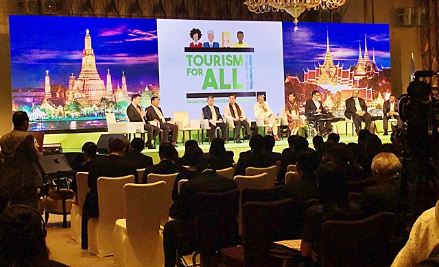 ภายในงานได้เปิดเวทีสัมมนา หัวข้อ “การท่องเที่ยวเพื่อคนทั้งมวล : การกำหนดกรอบนโยบายและระเบียบปฏิบัติที่เพียงพอ” โดยนางกอบกาญจน์ วัฒนวรางกูร รัฐมนตรีว่าการกระทรวงการท่องเที่ยวและกีฬา พร้อมด้วยคณะผู้แทนระดับสูงจากนานาประเทศ ร่วมกันแลกเปลี่ยนความคิด โดยทั้งหน่วยงานรัฐและภาคีเครือข่าย เห็นด้วยกับแนวทางการส่งเสริมการท่องเที่ยวระดับโลก ด้วยการสนับสนุนให้กลุ่มผู้ด้อยโอกาส คนพิการ มีโอกาสเข้าถึงการท่องเที่ยวอย่างเท่าเทียมกัน ผลักดันให้นานาประเทศกำหนดนโนบายที่ชัดเจน เพราะสถิติในแต่ละปีพบว่า มีนักท่องเที่ยวจำนวนมากเดินทางออกไปเที่ยวต่างประเทศ ดังนั้นหากให้ความสำคัญกับกลุ่มผู้ด้อยโอกาส ถือเป็นจุดเริ่มต้นในการท่องเที่ยวอย่างย่งยืน ช่วยขับเคลื่อนเศรษฐกิจให้เติบโตอย่างมั่นคง