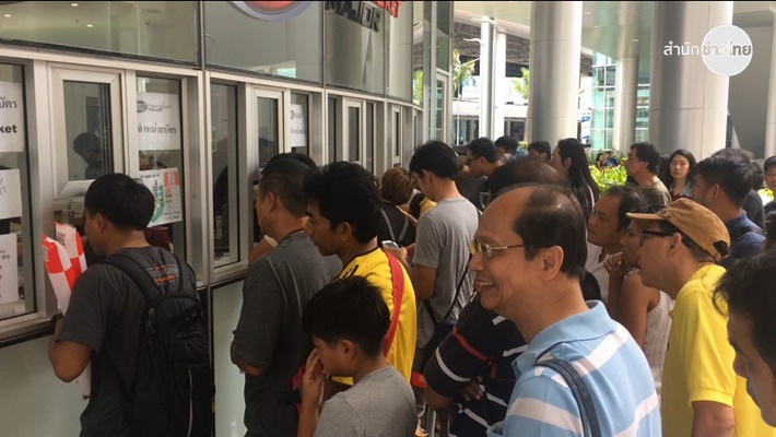 ขณะที่บัตรเข้าชมการแข่งขันในวันนี้ขายหมดอย่างรวดเร็ว เหลือเพียงบัตรที่นั่งราคา 300 ซึ่งแฟนๆ ทั้งชาวไทยและชาวต่างชาติที่ไม่ได้จองตั๋วล่วงหน้า ต่างมาเข้าคิวเพื่อซื้อบัตรหน้างานกว่า 100 คน พร้อมบอกว่า แม้จะไม่ได้นั่งในตำแหน่งที่ดีมาก แต่ขอร่วมเป็นส่วนหนึ่งในการส่งเสียงเชียร์ให้กำลังใจนักกีฬาในนัดประวัติศาสตร์.-สำนักข่าวไทย