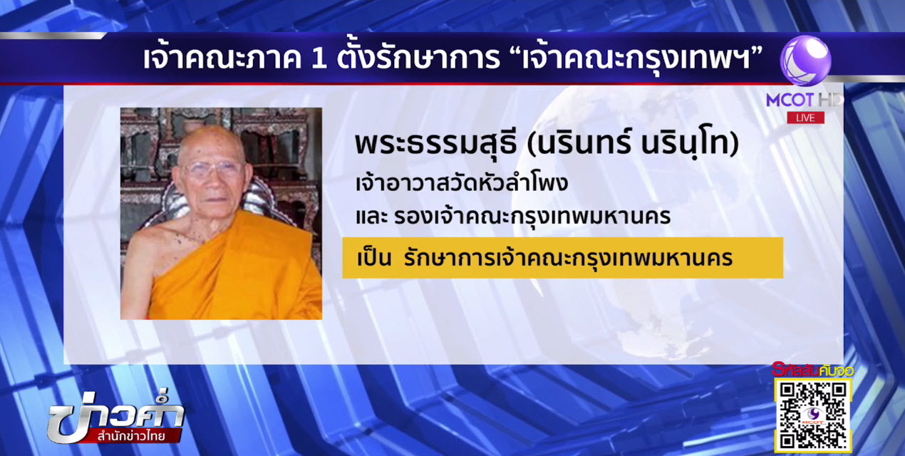 ขณะที่เว็บไซต์ “สังฆาธิการ” รายงานว่า พระเทพสุธี เจ้าคณะภาค 1 ในฐานะกำกับดูแลเขตปกครองกรุงเทพมหานคร รวมถึงเขตปริมณฑลในบางจังหวัด ได้เห็นชอบแต่งตั้งให้ “พระธรรมสุธี” เจ้าอาวาสวัดหัวลำโพง รองเจ้าคณะกรุงเทพมหานคร เป็นรักษาการเจ้าคณะกรุงเทพมหานคร โดยมีผลทันที พร้อมกับรายงานให้สมเด็จพระพุทธชินวงศ์ เจ้าคณะใหญ่หนกลาง และกรรมการ มส. รับทราบ เพื่อนำเข้าสู่ที่ประชุม มส. ในวันที่ 30 พฤษภาคม สำหรับการแต่งตั้งดังกล่าวสืบเนื่องจากอดีตพระพรหมดิลก เจ้าอาวาสวัดสามพระยา อดีตเจ้าคณะกรุงเทพมหานคร ถูกดำเนินคดีฐานฟอกเงินในคดีทุจริตเงินทอนวัดลอตที่ 3