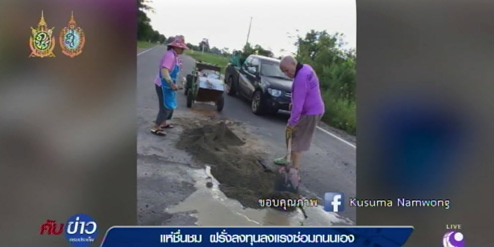 ผู้ใช้เฟซบุ๊ก Kusuma Namwong ได้โพสต์ภาพและวีดีโอคลิปชาวต่างชาติรายหนึ่ง ใช้ปูนซีเมนต์ซ่อมถนนด้วยตัวเอง โดยมีชาวบ้านช่วยเหลือ ระบุว่า “เขามาอาศัยบ้านเมืองเราอยู่ เขายินดีให้ความช่วยเหลือ พี่น้องชาวไทย ตามที่ช่วยได้ขอให้บอก Mr. Peter วันนี้ช่วยปิดหลุมกลางถนนหลวง รพช. ที่เกิดอุบัติเหตุบ่อย จนชาวบ้านหวั่นจะเกิดเหตุร้าย ด้วยงบส่วนตัวและที่ชาวบ้านสมทบ ขอบคุณผู้ใจดีสมทมา 120 บาท ค่ะ ขอสุขสมทุกประการนะคะ” ซึ่งถนนดังกล่าวตั้งอยู่ที่บ้านสระแก้ว ต.สระแก้ว อ.หนองหงส์ จ.บุรีรัมย์