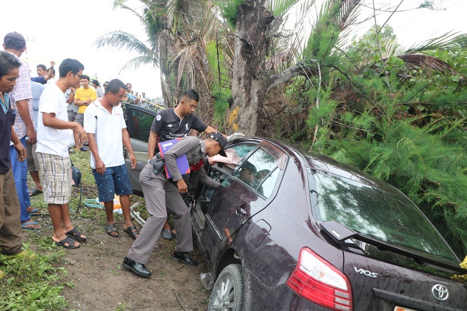 ร.ต.อ.ศรศักดิ์ ใบมิเด็น รองสารวัตร (สอบสวน) สภ.ปากพนัง จ.นครศรีธรรมราช ประสานแพทย์เวรโรงพยาบาลและมูลนิธิประชาร่วมใจเร่งช่วยเหลืออุบัติเหตุรถยนต์นั่งส่วนบุคคล ทะเบียน กน 179 นครศรีธรรมราช ชนต้นไม้อย่างแรงริมถนนสายปากพนัง-หัวไทร หมู่ 7 ต.ท่าพญา อ.ปากพนัง มีผู้เสียชีวิต 2 ราย คือ จ.ส.ต.ทนงศักดิ์ เพชรสงค์ อายุ 40 ปี ตำรวจ สภ.การะเกด อ.เชียรใหญ่ จ.นครศรีธรรมราช คนขับ และนางจิตรดา แก้วหนู อายุ 67 ปี แม่ยายของ จ.ส.ต.ทนงศักดิ์ นั่งอยู่เบาะหลัง ส่วนผู้บาดเจ็บอีก 2 ราย เจ้าหน้าที่ได้ใช้เครื่องอุปกรณ์ตัดซากรถนำตัวออกมาได้พร้อมส่งโรงพยาบาลปากพนังอย่างเร่งด่วน คือ นาง