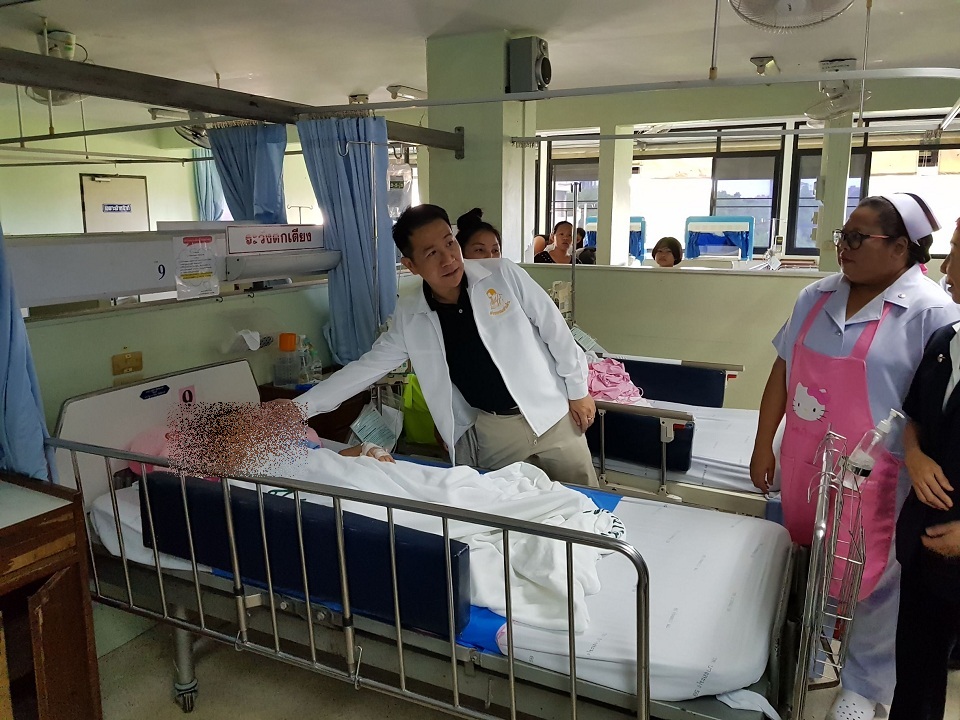 นายนริศ นิรามัยวงศ์ นายอำเภอบางละมุง จ.ชลบุรี พร้อมกิ่งกาชาดอำเภอ นำสิ่งของเยี่ยมอาการป่วยนักเรียนชั้น ป.4-6 ที่โรงพยาบาลบางละมุง เนื่องจากวานนี้ (1 มิ.ย.) เกิดอาการคลื่นไส้ อาเจียน และเวียนศีรษะ ประมาณ 70 คน หลังรับประทานอาหารกลางวันของโรงเรียน