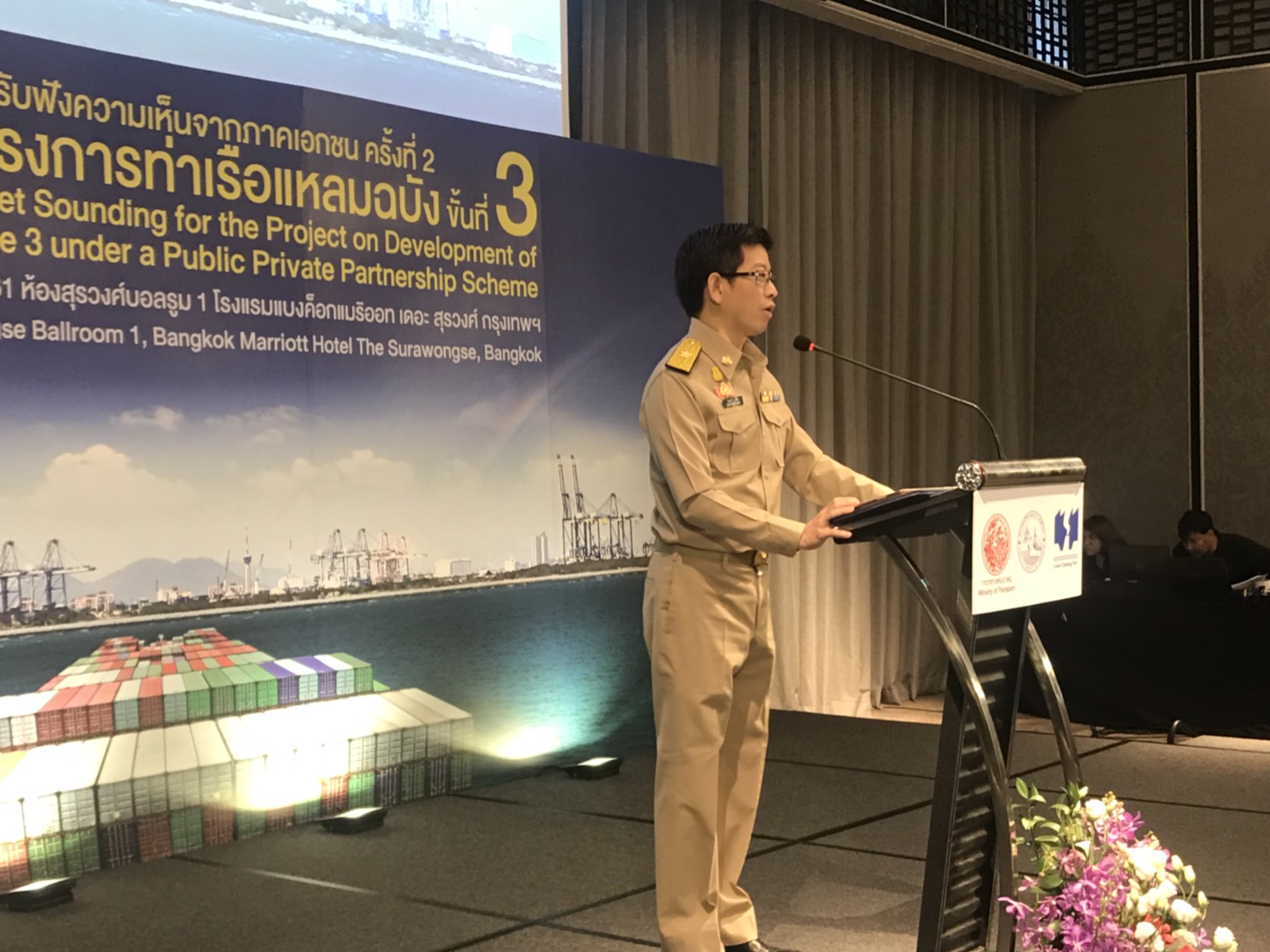 ผู้สื่อข่าวรายงานว่าโครงการพัฒนาท่าเรือแหลมฉบัง ขั้นที่ 3 เป็น 1 ในโครงการที่รัฐบาลเร่งขับเคลื่อนให้สำเร็จเป็นรูปธรรมในรูปแบบ PPP เพราะการขนส่งสินค้าทางน้ำมีต้นทุนต่ำที่สุด รองลงมา คือ ระบบรางและถนน โดยการรับฟังความคิดเห็นจากภาคเอกชนครั้งนี้จะมีส่วนช่วยขับเคลื่อนการพัฒนาโครงการไปสู่ความสำเร็จและลุล่วงตามวัตถุประสงค์ อันจะนำมาซึ่งประโยชน์ทางเศรษฐกิจและสังคมของประเทศ โดยการท่าเรือแห่งประเทศไทยกำหนดการรับฟังความคิดเห็นจากภาคเอกชน 3 ครั้ง เพื่อร่วมกันพิจารณาแนวทางร่วมลงทุนที่เหมาะสมที่สุด โดยที่ผ่านมาได้ดำเนินการรับฟังความคิดเห็นจากภาคเอกชน ครั้งที่ 1 เมื่อวันที่ 2 พฤษภาคม 2561 ได้นำเสนอข้อมูล นโยบาย และแผนงานต่าง ๆ ที่เกี่ยวข้องกับโครงการพัฒนาท่าเรือแหลมฉบัง ขั้นที่ 3 และความเป็นไปได้ของโครงการ ซึ่งพบว่านักลงทุนและผู้สนใจจากภาคเอกชน ร้อยละ 95 เชื่อว่าท่าเรือแหลมฉบัง ขั้นที่ 3 มีความต้องการใช้ระบบจัดการขนตู้สินค้าแบบกึ่งอัตโนมัติเข้ามาดำเนินการในช่วงแรก นอกจากนี้ ยังมีนักลงทุนและผู้สนใจจากภาคเอกชนที่แสดงความสนใจที่จะเข้ามาร่วมลงทุน ร้อยละ 92 และเห็นด้วยกับแผนแม่บทพัฒนาท่าเรือแหลมฉบัง ขั้นที่ 3 ร้อยละ 93 ทั้งนี้ ร้อยละ 50 ของนักลงทุนและผู้สนใจจากภาคเอกชนให้ความสนใจที่จะร่วมลงทุนในท่าเรือสินค้า รองลงมา คือ ท่าเรืออเนกประสงค์ ร้อยละ 38 และท่าเรือขนส่งสินค้ายานยนต์ ร้อยละ 12