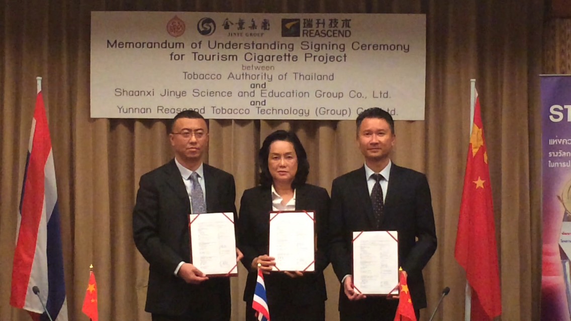 การยาสูบแห่งประเทศไทย จัดพิธีลงนามบันทึกความเข้าใจ (MOU) “โครงการบุหรี่นักท่องเที่ยวจีน” ระหว่างการยาสูบแห่งประเทศไทย กับบริษัท Shaanxi Jinye Science Education Group Co., Ltd. (Jinye) และบริษัท Yunnan Reascend Tobacco Technology (Group) Co.,Ltd. (Reascend) เพื่อความร่วมมือในอุตสาหกรรมยาสูบของประเทศไทยและสาธารณรัฐประชาชนจีน เน้นเจาะตลาดกลุ่มนักท่องเที่ยวชาวจีนที่เดินทางมาประเทศไทย